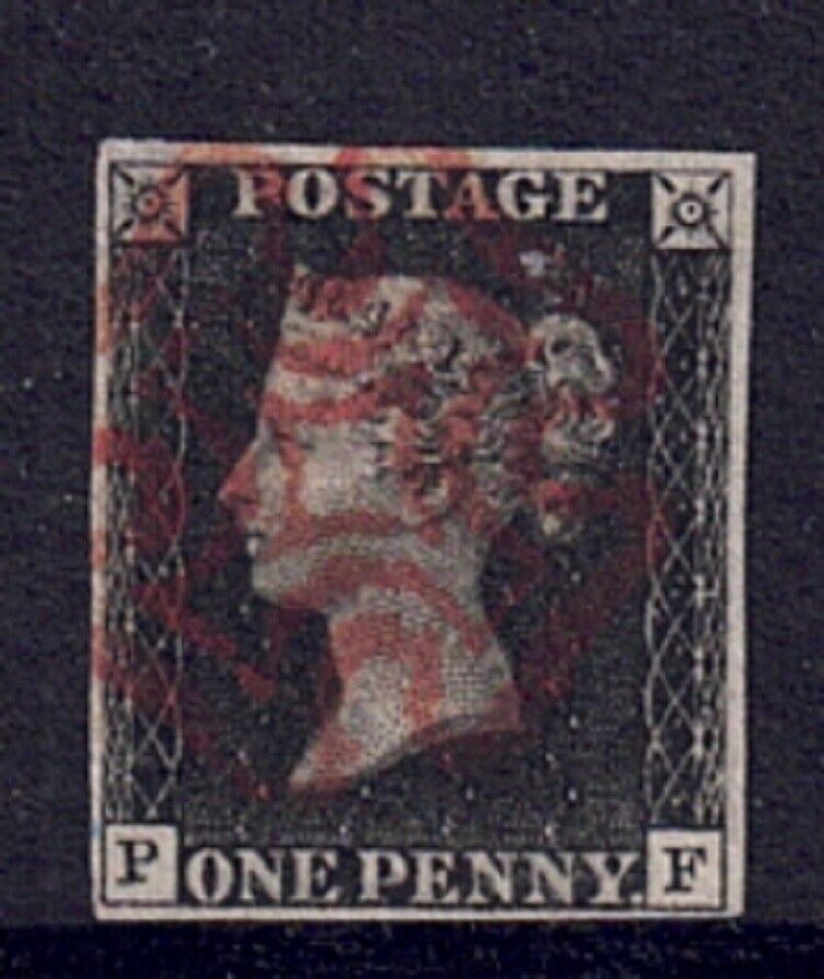 QV SG2 1d Black Plate 1b PF with 4 margins and red M/C clean back