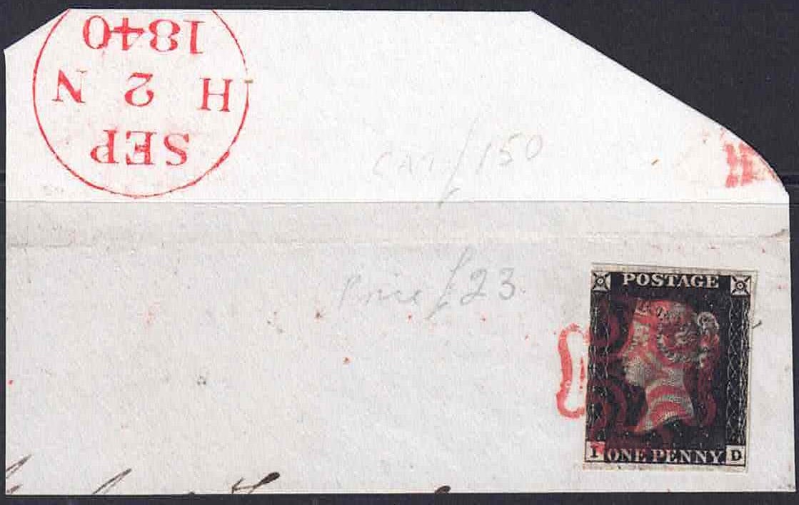 QV SG3 Plate 4 I_D good example of black dots typical of plate 4 red Mx and red date stamp Sep 1840